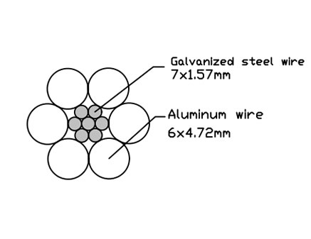 1.Aluminum 1350-H19 wires, concentrically stranded about a steel core. Standard core wire for ACSR is class A galvanized